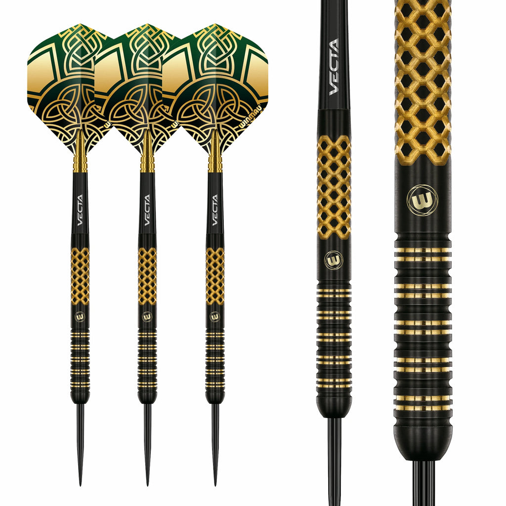 Die Brendan Dolan "History Maker" Signature Darts bestehen aus 90% Tungsten und überzeugen durch eine ausgewogene, gerade Barrel-Form. Sie kombinieren präzise gefertigte Grip-Zonen mit einer edlen Optik in Schwarz und Gold.