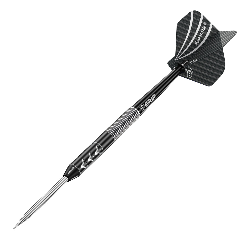 Der Arno Merk Challenger Steeldart überzeugt durch ein durchdachtes Design und hochwertige Verarbeitung - perfekt abgestimmt auf die Spielweise von Arno Merk. Gefertigt aus 90% Tungsten und in 22g erhältlich, vereint dieser Dart stilvolle Optik mit funktionalem Grip. Das Barrel ist optisch klar in zwei Bereiche unterteilt: Die vordere Gripzone ist glatt gehalten, besticht jedoch durch ein schwarzes Coating und fein gravierte Symbole, die dem Dart eine elegante und individuelle Note verleihen. In der Mitte des Barrels befindet sich das klassische BULL'S Logo, gegenüberliegend das persönliche Logo von Arno Merk - ein Detail, das den Dart auch optisch zum Hingucker macht.