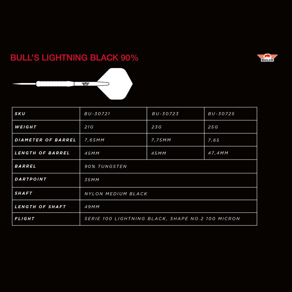 Leicht torpedoförmiger 90% Tungsten Dart, in schöner schwarzer Beschichtung und mit viel Grip.