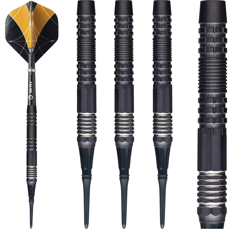 Softdarts aus hochwertigen 90% Tungsten, gerades Barrel mit verschiedenen Gripzonen. Die Darts in 20 Gramm Barrel- und 22 Gramm Gesamtgewicht bieten tollen Halt und garantieren hohe Spielbarkeit.