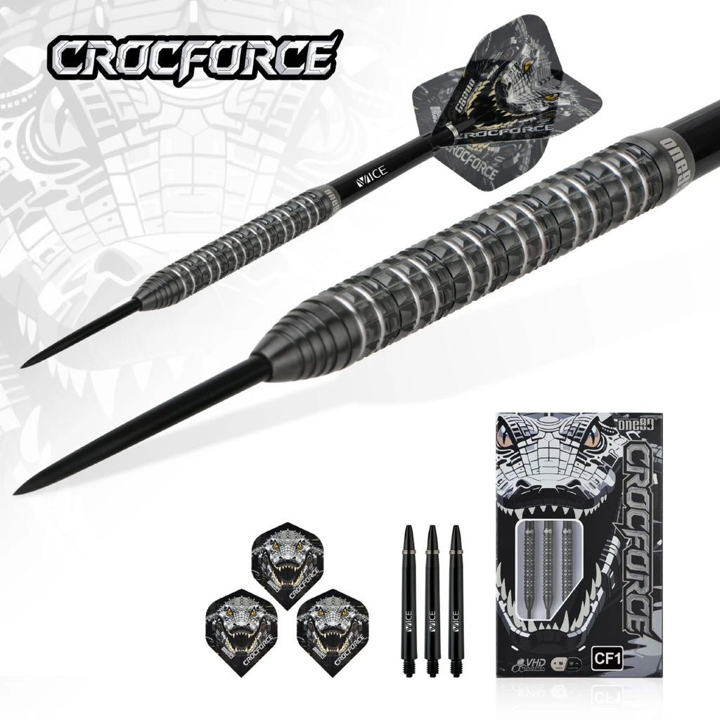 Die Crocforce Serie aus dem Hause one80 hat ihren Namen nicht ohne Grund. Die 4 verschiedenen Barrel Typen haben alle eins gemeinsam, eine aufwändige Axialfräsung, die den Darts einen Look verleihen, der einer Krokodilhaut ähnelt und unglaublich guten Grip bietet. Die rutschen Euch nicht aus der Hand.