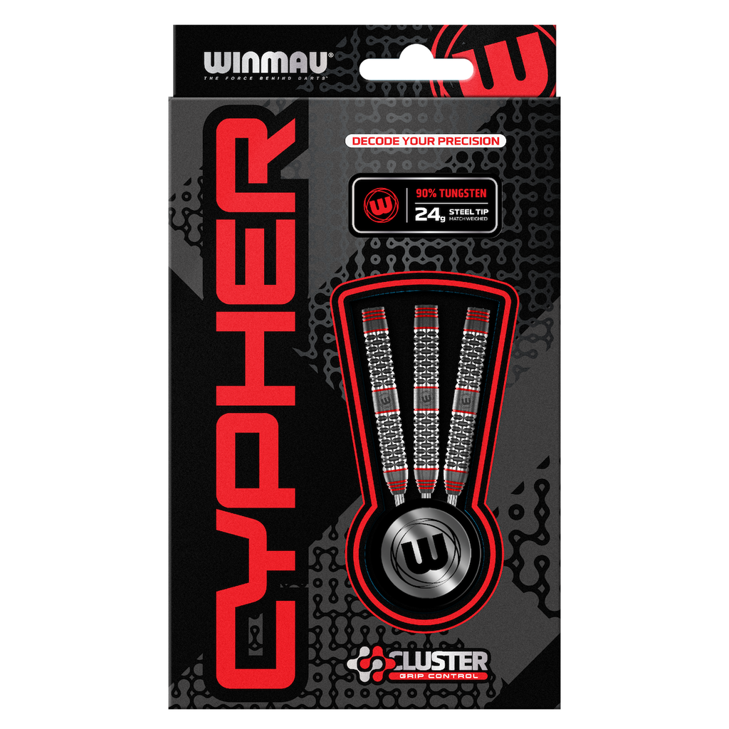 Die Cypher Darts bieten ein gerades Barrel und sind mit einem sogenannten Cluster Grip ausgestattet, der dem Spieler ein sehr gutes Feedback und viel Halt bietet.