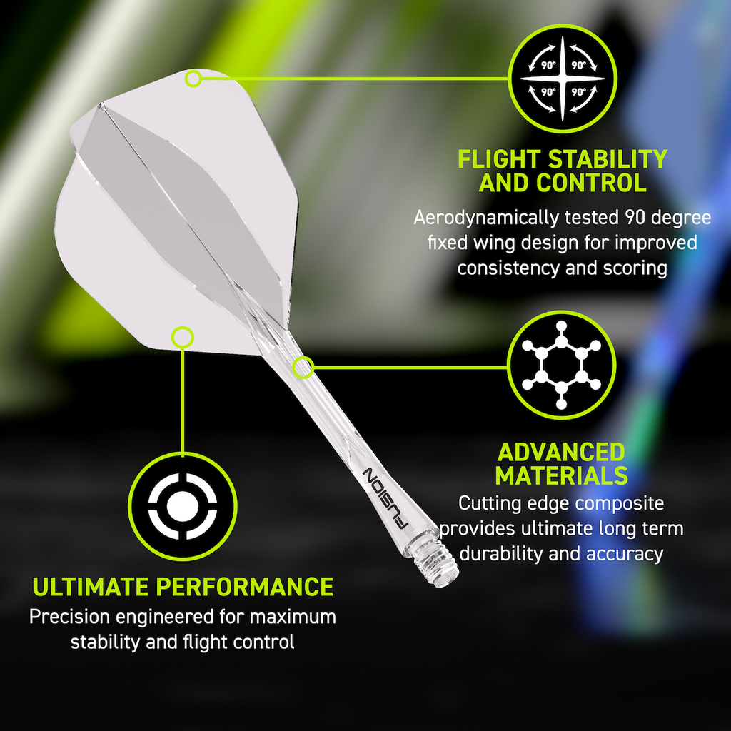 Ergonomisch geformte integrierte Flight-Schaft Combo erhältlich in 3 verschiedenen Längen.
