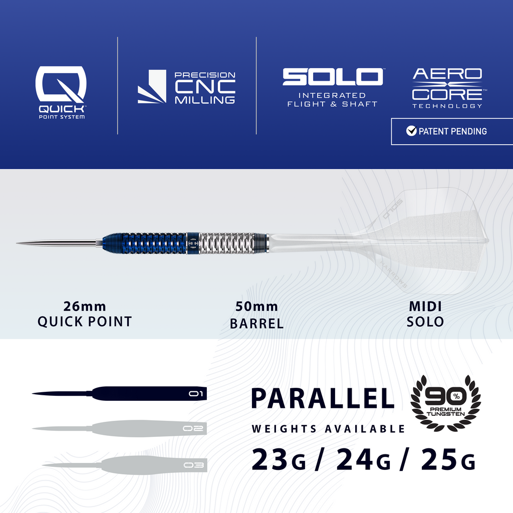 Die GEO Serie ist Harrows neues Flagschiff. Ausgestattet mit allem was das Darterherz begehrt. Die GEO Barrels sind mit einem sehr aufwendig hergestellem Gripprofil versehen und haben eine tolle blau-silberne Beschichtung.