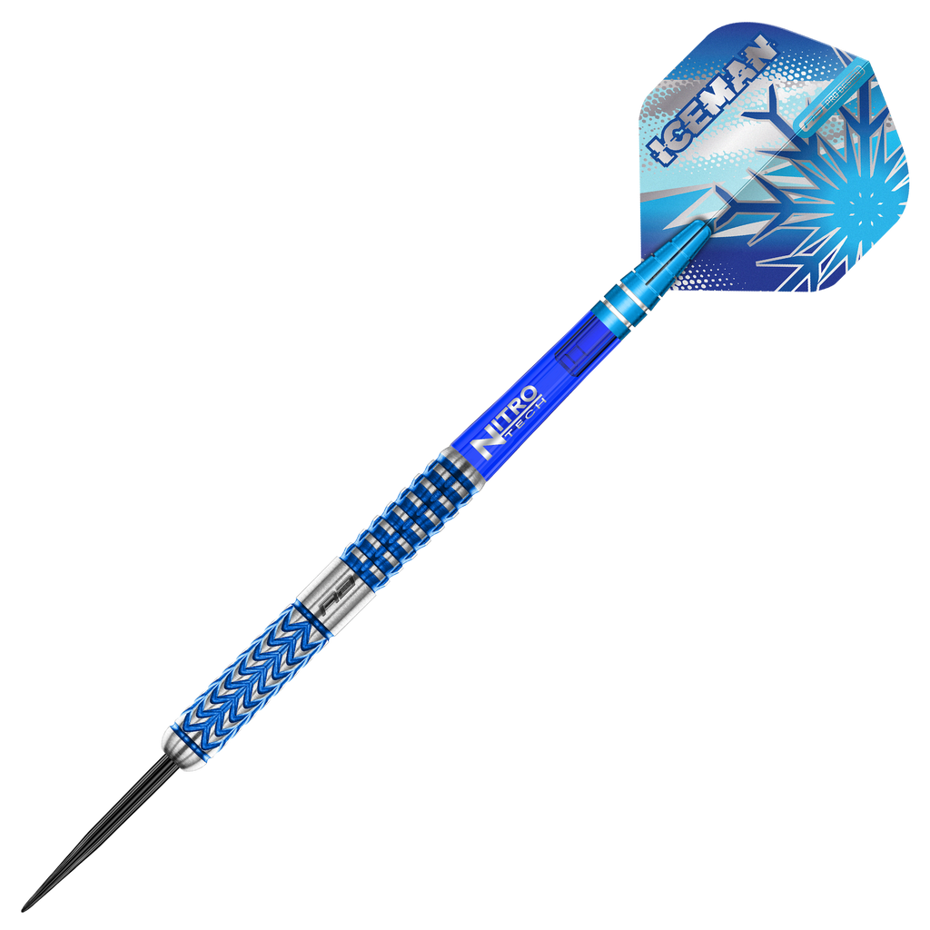 Gerades Barrel mit zwei Gripbereichen im klassischen Iceman Design mit Signature Flights.