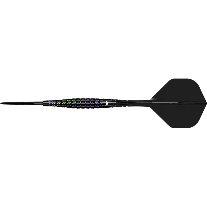 Die Mission Black Opal Darts bringen Premium-Performance ans Oche: Die Barrels aus 95 % Tungsten mit konturierter Form, gefrästen Cuts und feinen Radialrillen liefern griffige Kontrolle ohne übermäßig aggressiv zu wirken. Die schwarz-opalartige Barrelstruktur trifft auf eine PVD-Beschichtung in Schwarz/Koralle, die fast das gesamte Barrel umfasst; hinten setzt ein kurzer, glatter Abschnitt mit lasergraviertem Mission-Logo einen präzisen Referenzpunkt. Vorn sorgt die glatt zulaufende Barrelspitze in Kombination mit der glatten schwarzen Caliburn EVO-Spitze für einen sauberen Release und stabile Flugbahnen.