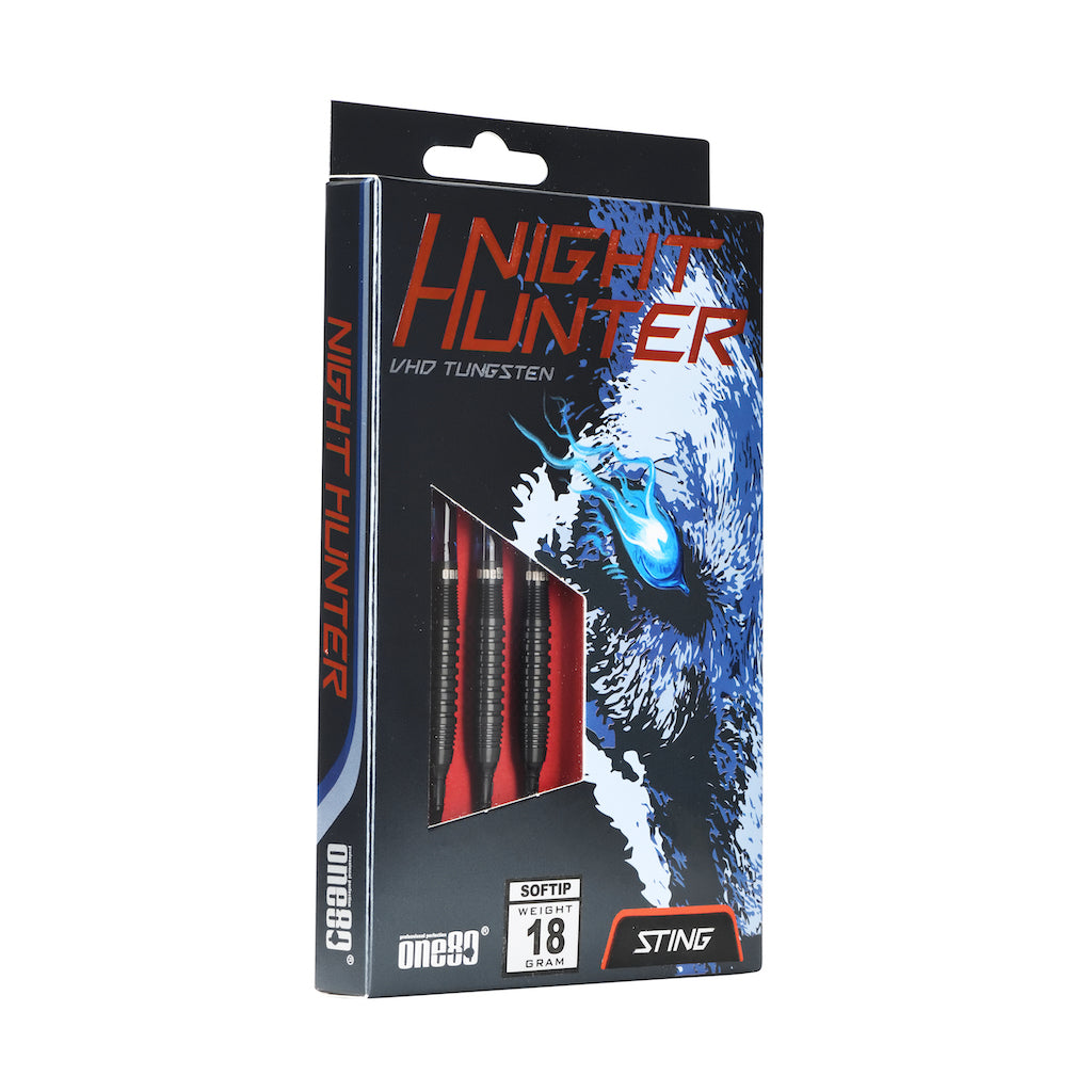 Die Night Hunter Serie aus dem Hause One80 kommen mit schwarzen Titanium-Nitrid Überzug, dunkelblauen Vice Schäften und speziell für diese Serie designten Flights.