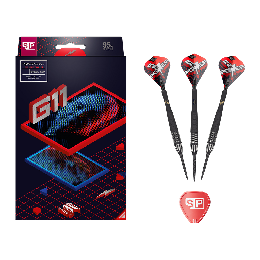 Die Phil "The Power" Taylor Darts gehen in die 11. Generation. Wie bisher ein torpedoförmiges Barrel mit viel Grip, das maximale Spielbarkeit garantiert. Die Darts sind mit einer schwarzen Titanium-Nitrid Beschichtung versehen, die für zusätzlichen Grip sorgt.