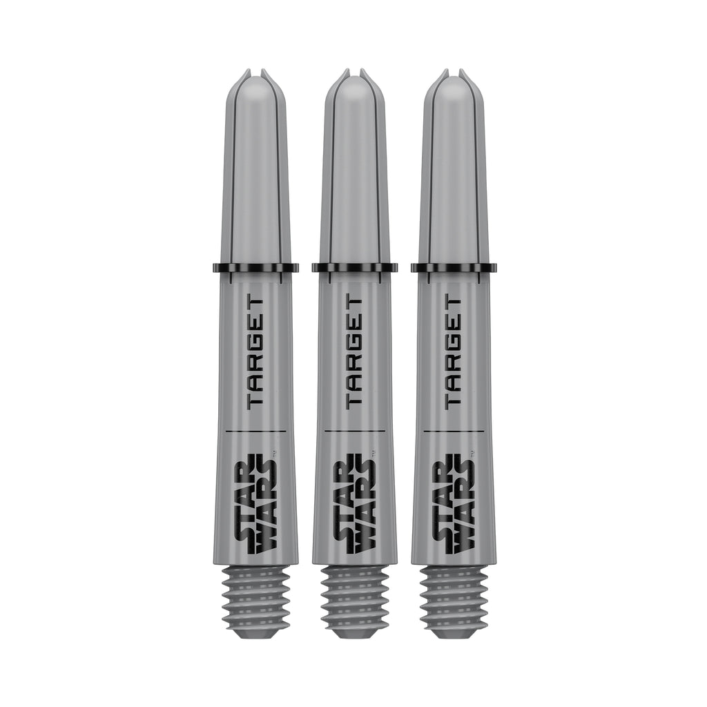 STAR WARS™ | TARGET Darts Pro Grip Shafts sind das Resultat einer offiziellen Zusammenarbeit mit der Walt Disney Company. Der graue Pro Grip Schaft ist mit den Logos von Star Wars und Target versehen. Das sorgt für ein schlichtes, aber auffälliges Design auf Targets beliebtesten Dart-Schaft.