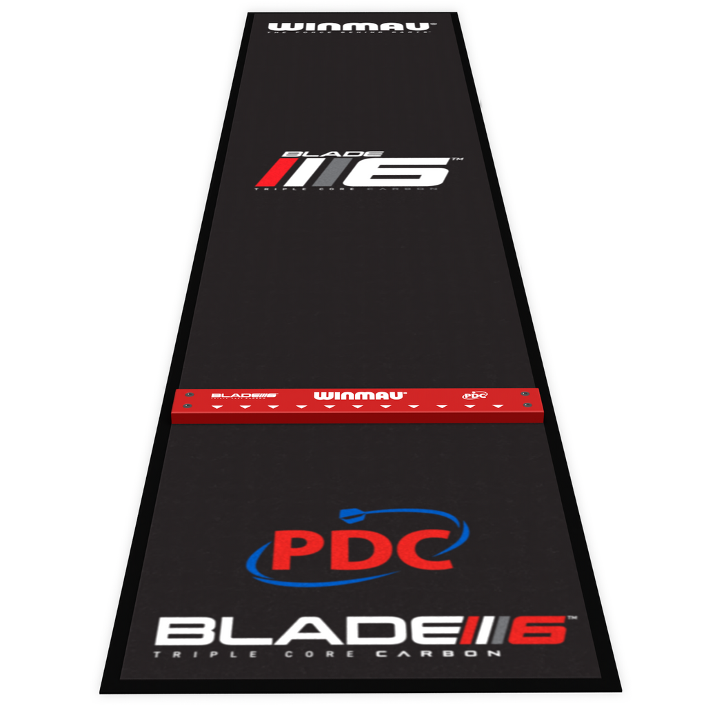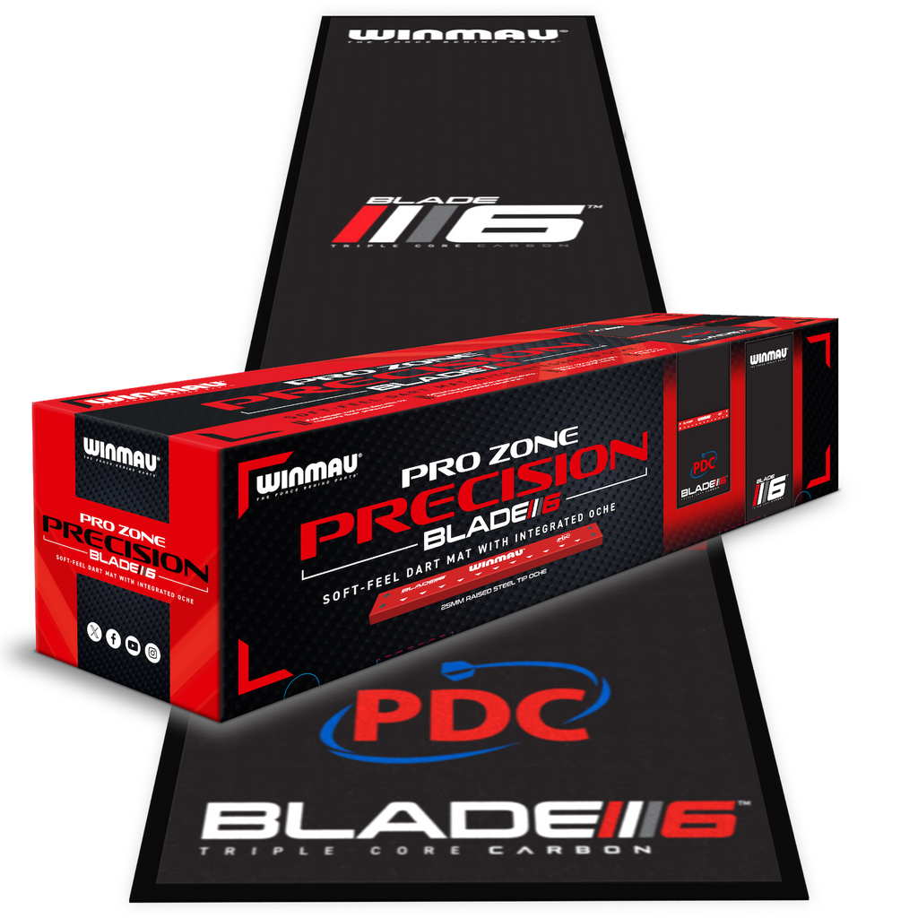 Sportlich, leicht – Blade 6 & PDC Design.Offizielle Turniermaße für das Oche mit integriertem erhöhtem Oche. Die Winmau Pro Zone Blade 6 Soft Feel Dart Matte bietet vollflächigen Bodenschutz und ist ideal für den Einsatz im Dartbereich. Diese rutschfeste Dartmatte entspricht den offiziellen Turniermaßen und ist aus extrem haltbarem, schwerem Spezialgummi gefertigt. Sie ist ideal für den gewerblichen Gebrauch und bietet perfekten Schutz für den Boden. Die hochwertige, strapazierfähige Velourmatte schützt den Boden optimal. Sie verfügt über offizielle Abstandsmarkierungen für Soft- und Steeldart. Die Unterseite ist mit rutschfestem Gummi ausgestattet, während die Oberseite aus einem angenehm weichen Teppichstoff besteht.