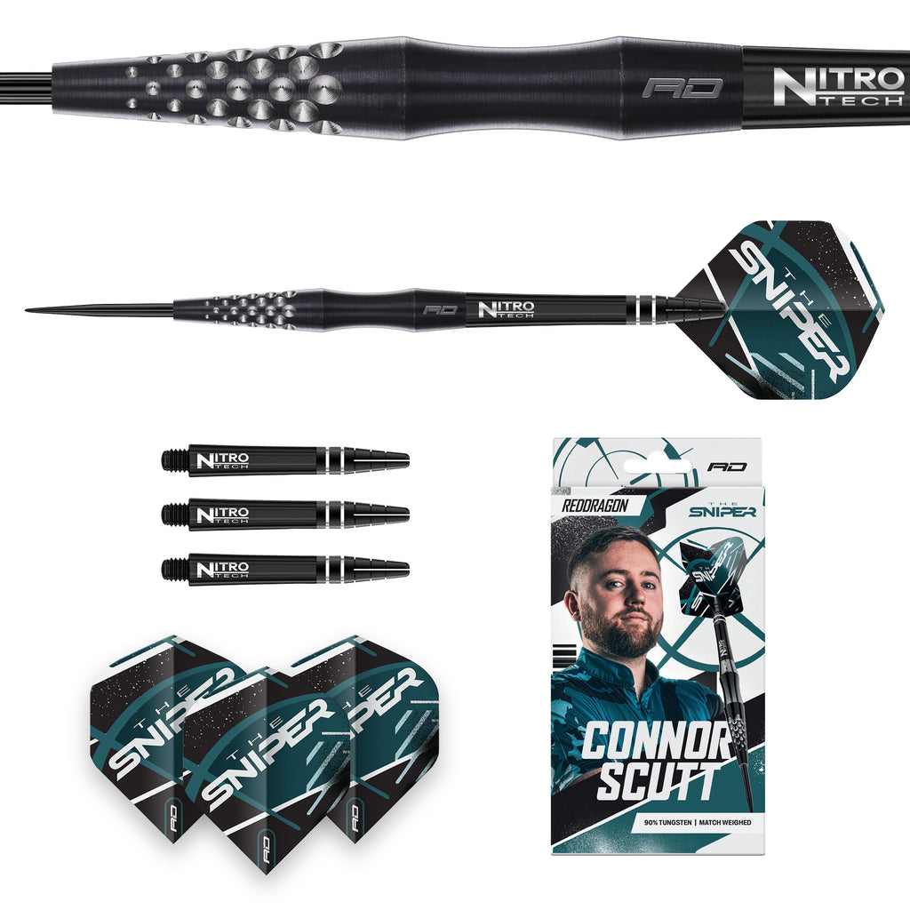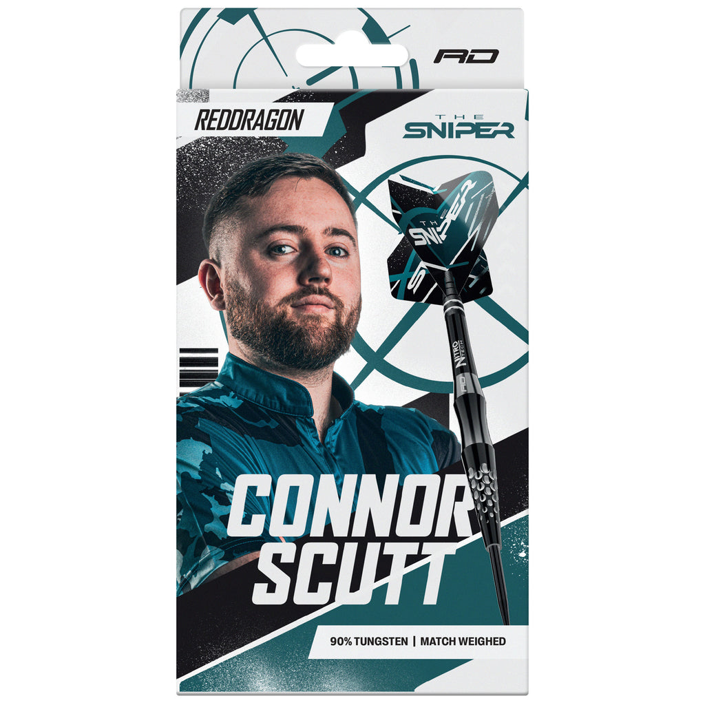 Connor Scutt ist von Mission zu Red Dragon gewechselt, dementsprechend gibt es einen neuen Dart für ihn. Das Barrel das nach vorn sehr schlank zuläuft hat die für den"Sniper" typische Griffmulde, die zwar ohne Gripelemente kommt, sich jedoch auf Grund der Tiefe sehr gut halten und kontrolliert spielen lässt.