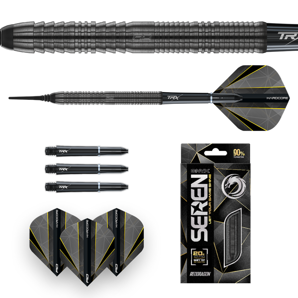 Die Seren Onyx sind neue eine neue Serie von Red Dragon mit insgesamt 4 verschiedenen Barrelformen. Die Onyx haben eine schwarze Beschichtung und sind ausgestattet mit TRX Schäften in short und SIgnature Flights.