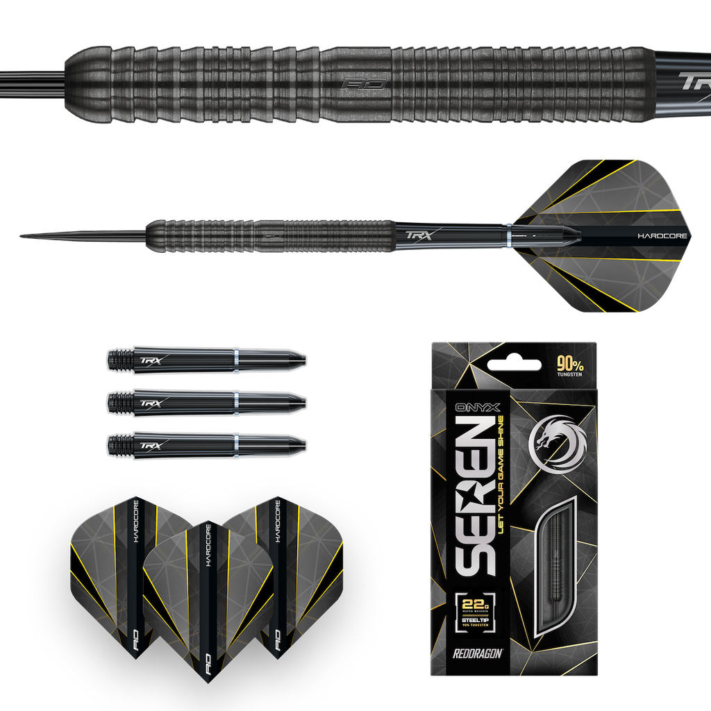 Die Seren Onyx sind neue eine neue Serie von Red Dragon mit insgesamt 4 verschiedenen Barrelformen. Die Onyx haben eine schwarze Beschichtung und sind ausgestattet mit TRX Schäften in short und SIgnature Flights.