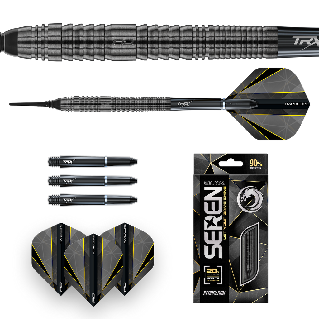 Die Seren Onyx sind neue eine neue Serie von Red Dragon mit insgesamt 4 verschiedenen Barrelformen. Die Onyx haben eine schwarze Beschichtung und sind ausgestattet mit TRX Schäften in short und Signature Flights.