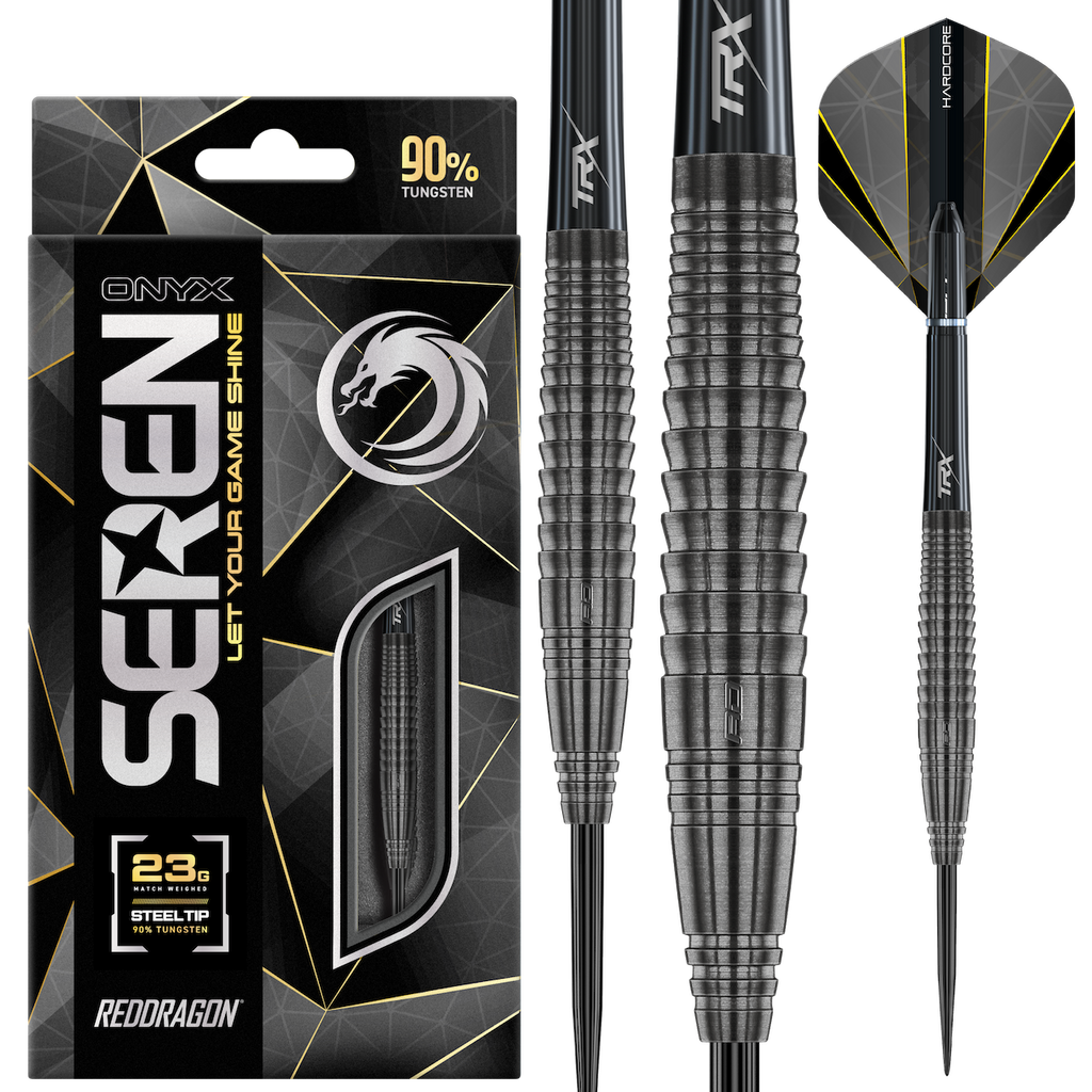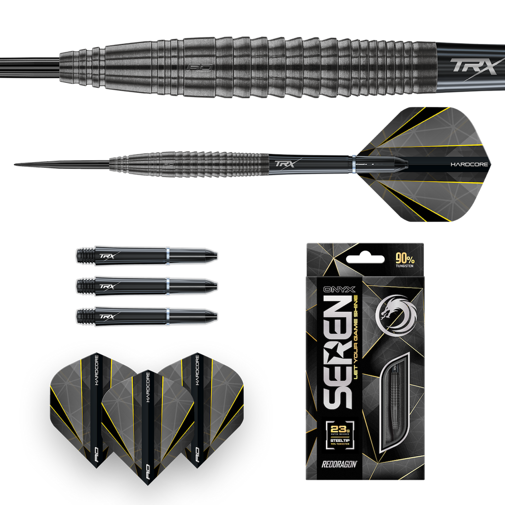 Die Seren Onyx sind neue eine neue Serie von Red Dragon mit insgesamt 4 verschiedenen Barrelformen. Die Onyx haben eine schwarze Beschichtung und sind ausgestattet mit TRX Schäften in short und SIgnature Flights.