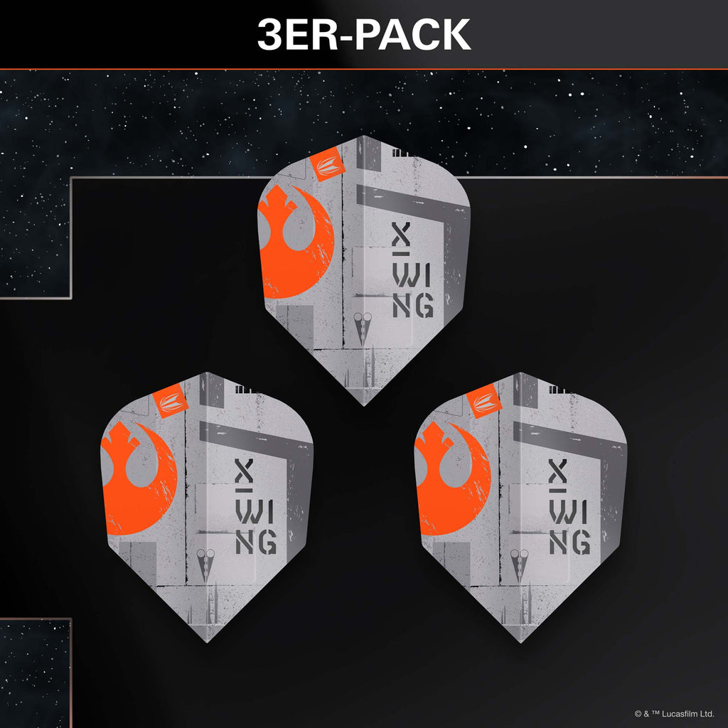 Vertreten Sie die Rebellenallianz mit den STAR WARS™ | TARGET Darts X-Wing Pro Ultra Flights, die in offizieller Zusammenarbeit mit der Walt Disney Company entstanden sind. Inspiriert von dem Sternjäger, der Hoffnung für die Rebellion symbolisiert, sind diese Flights Teil der X-Wing-Dartserie.