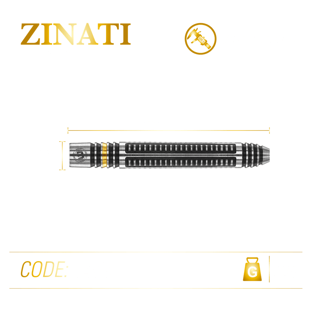 Die biomechanisch gestalteten, sich progressiv verjüngenden Barrels von Zinati ermöglichen es, den Pfeil auf die komplexen und wesentlichen Kräfte der Wurfhand auszurichten. Die fein detaillierten horizontalen Fräsen unterstützen die Drehbewegung, die bei jedem großen Dartwurf zu sehen ist. Diese Visionen von Schönheit kommen mit der unbegrenzten technischen Leistung, die große Spieler als Standard fordern.
